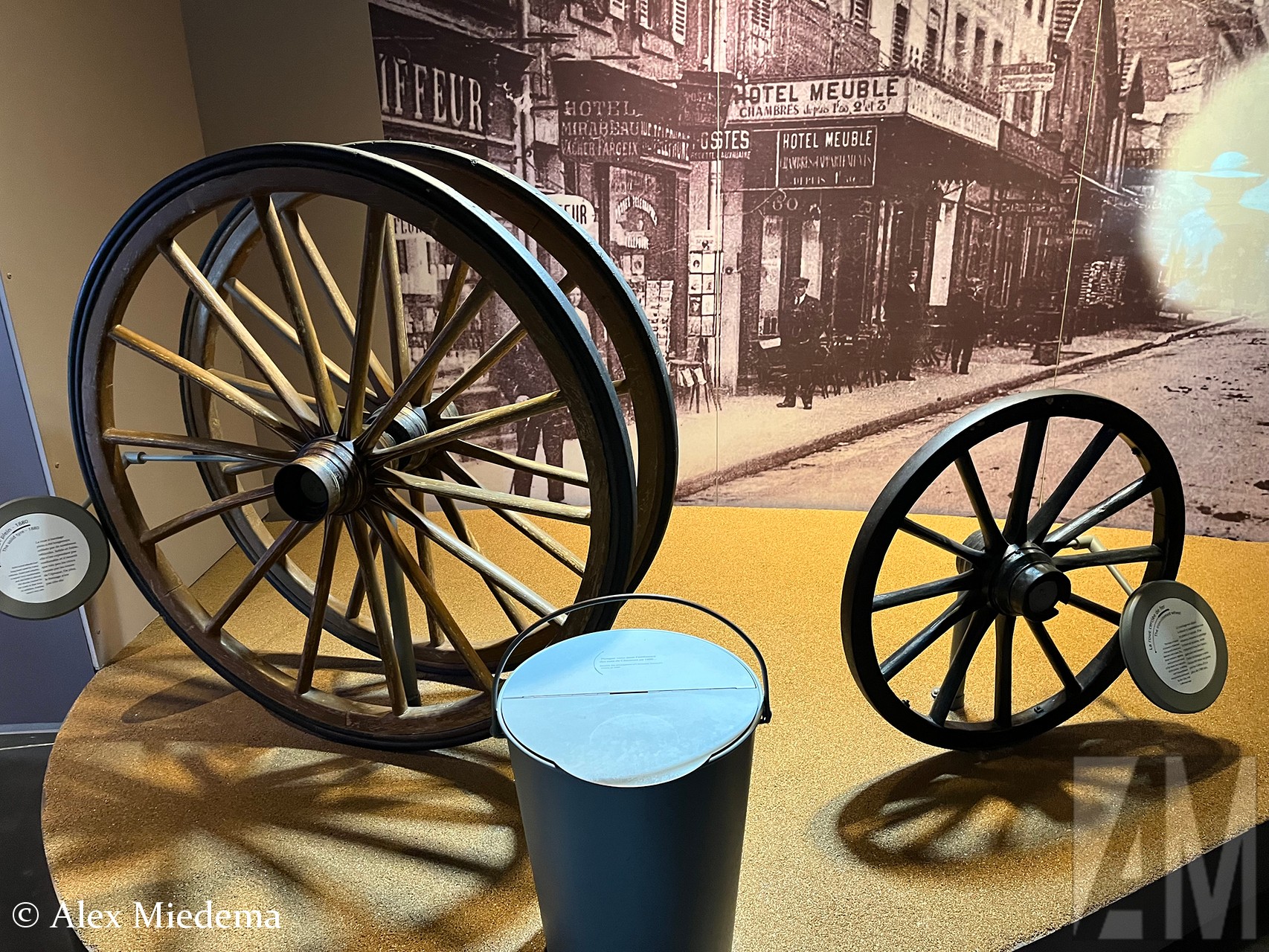 Hoogtepunt van de boven-etage is voor velen de draaimolen die in 1895 op de fietsbeurs in Parijs stond. Het ‘Houten paard van Michelin’ was door André Michelin bedacht. Voor twee sous mochten bezoekers er in zitten. Eerst in het karretje met massieve banden, daarna in het karretje met de luchtband, om zo zelf het verschil in comfort te ervaren.